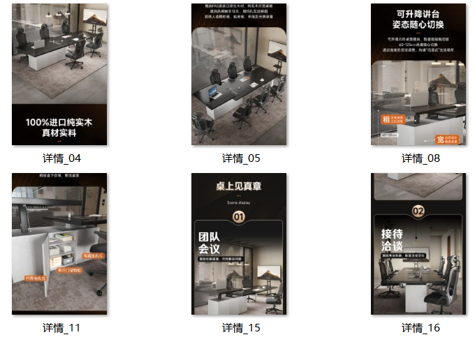 会议070口字脚升降办公会议一体桌-第2版图-哑光黑